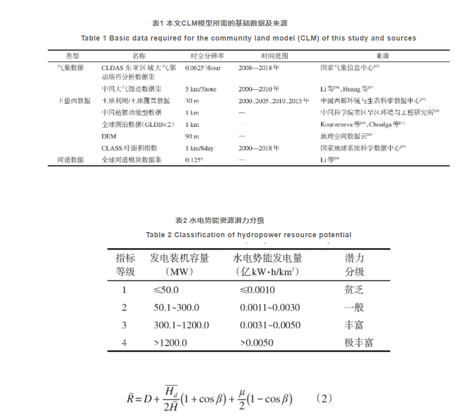 本文驅(qū)動(dòng)CLM模型所用數(shù)據(jù)集如表1所示,水電勢能潛力評(píng)估的空間分辨率為1 km,時(shí)間為2000—2018年。