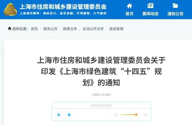 上海市綠色建筑“十四五”規劃:低能耗建筑示范項目不少于500萬平方米