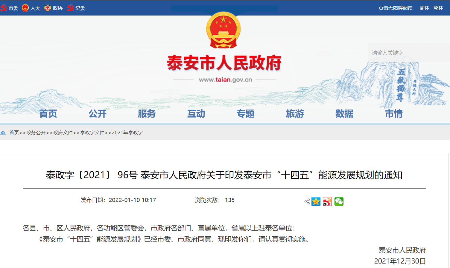 文章來源:地大熱能 發(fā)布作者:山東省泰安市人民政府 發(fā)表時(shí)間:2022-01-12 09:06:56瀏覽次數(shù):4088